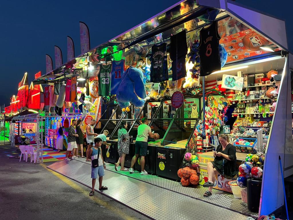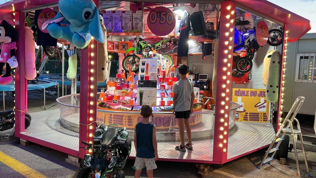 Le stand de tir au ballon est une attraction où les participants visent et tirent sur des ballons en mouvement pour gagner des cadeaux. Bonne chance….