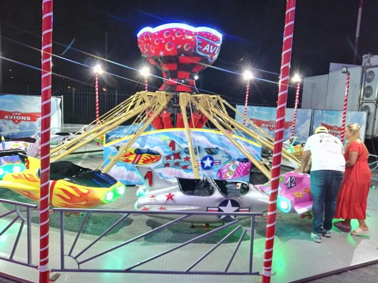 Le manège d’avions, lorsque qu’il est en marche, les bras se lèvent, se balancent et tournent, donnant ainsi aux passagers l’impression de voler et de tournoyer à différentes hauteurs et angles.